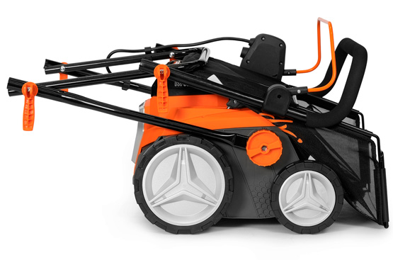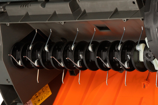 Травосборник, объемом 55 л,позволяет реже отвлекаться от работы. Выполнен из ткани и имеет жесткую основу. Благодаря этому он более вместительный, чем пластиковые травосборники, и его легко собирать и разбирать.