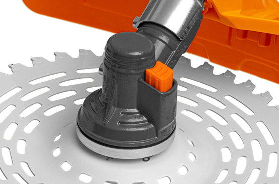 Специальная изогнутая форма диска позволяет скашивать траву практически под корень, а так же защищает редуктор от попадания грязи и скошенной травы.
